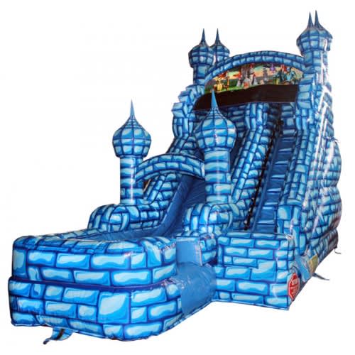 Are you looking to add a water feature to your next party? Look no further! We bring the waterpark right to your backyard! Take a look at our inflatable waterslides and choose your favorite! The 16 foot tall blue castle waterslide inflatable stands at 20 feet tall with a 16 foot tall slide height! The slide ends with a pool area that the kids splash in to! These book fast so don't delay! Call us at: 708-829-2652