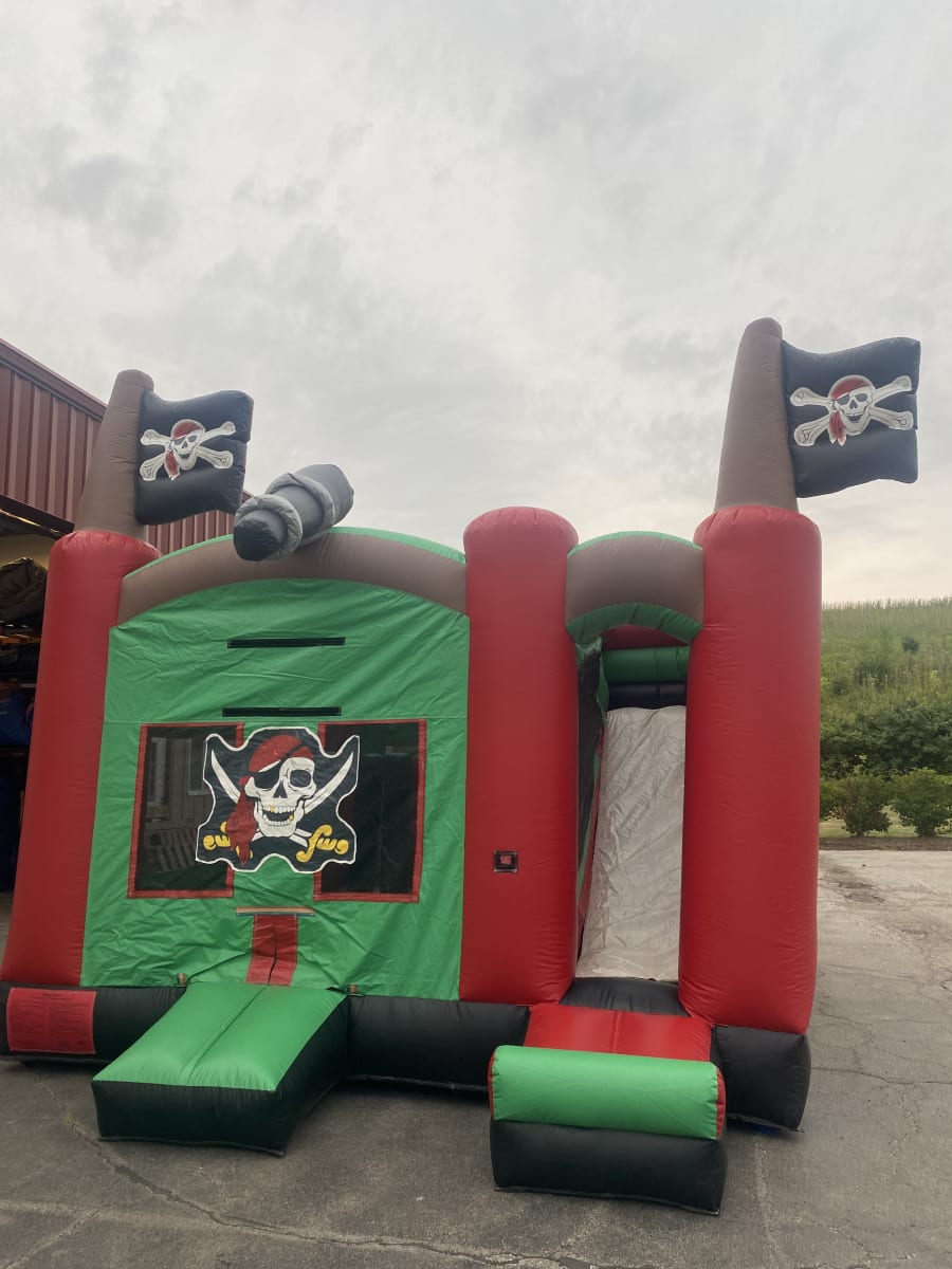 If you are having a pirate themed event, this 5 in 1 bounce house combo with slide will match your theme perfectly and is sure to be the hit of your party! The bounce house features a basketball hoop, and large slide with a generous bouncing area. Call today and reserve!