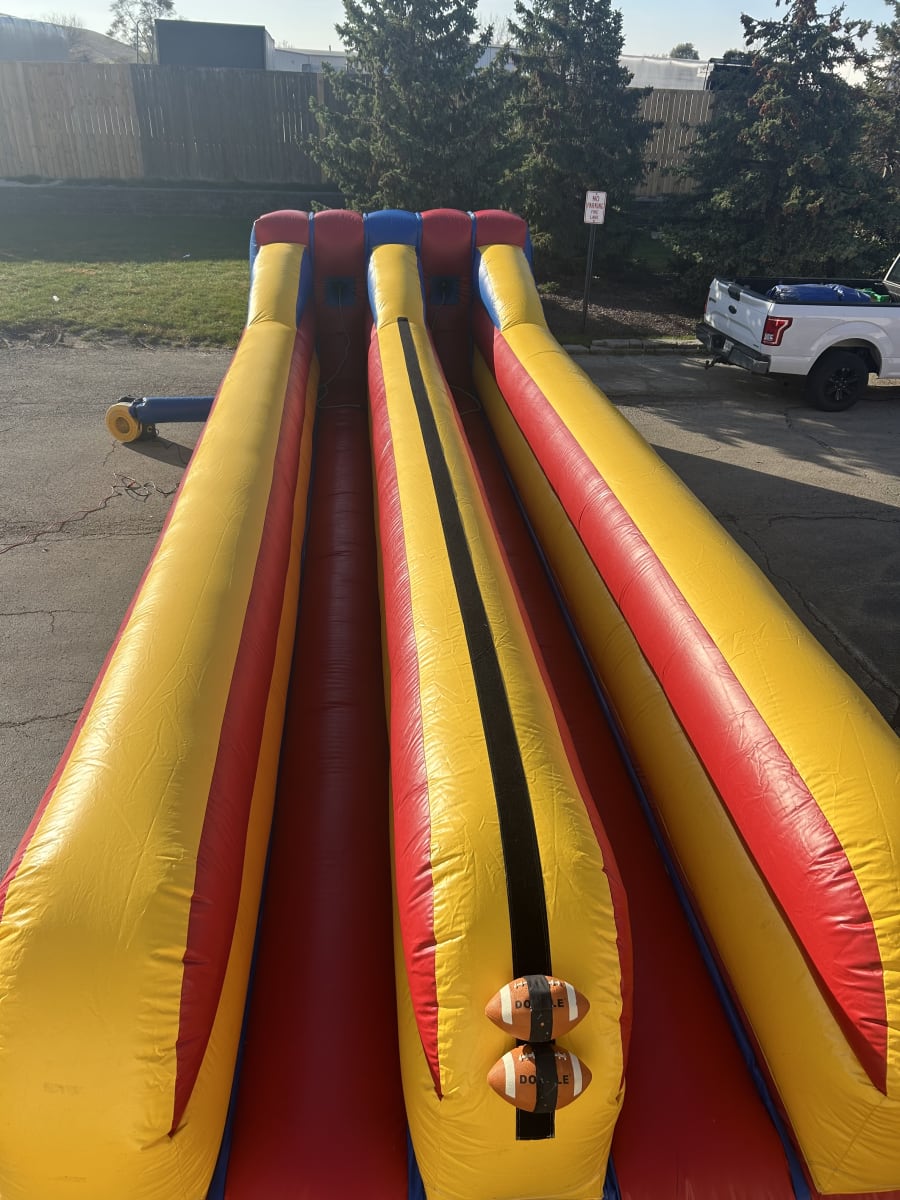 Players connect to bungee cords and run as far away as the cord will stretch.....eventually EVERYONE will get pulled back!!! So much fun and fun to watch!