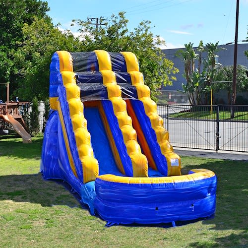 The 16 foot tall blue arctic inflatable waterslide will cool off all of your guests on a hot summer day. Our inflatable waterslides have splash pools at the base of the slides and allow you to bring the waterpark to your backyard!